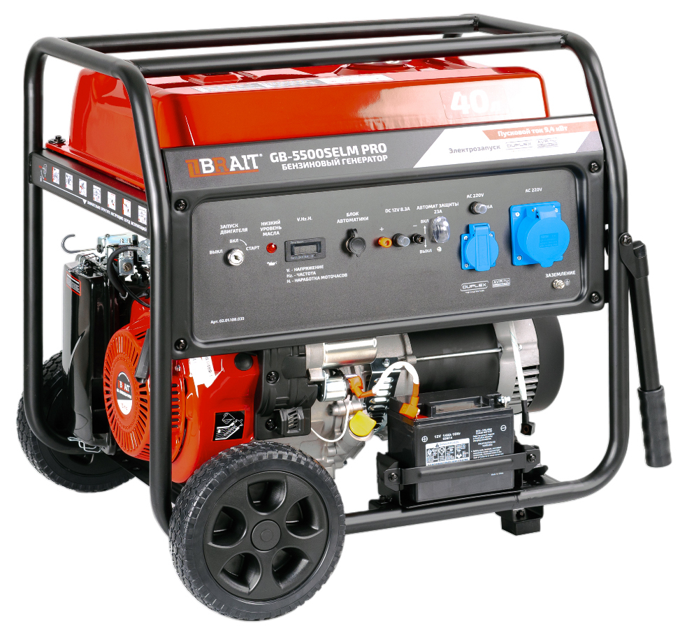 Генератор бензиновый Brait GB-5500SELM PRO (5.5 кВт, пусковой ток 9.4 кВт, возможность автозапкска)