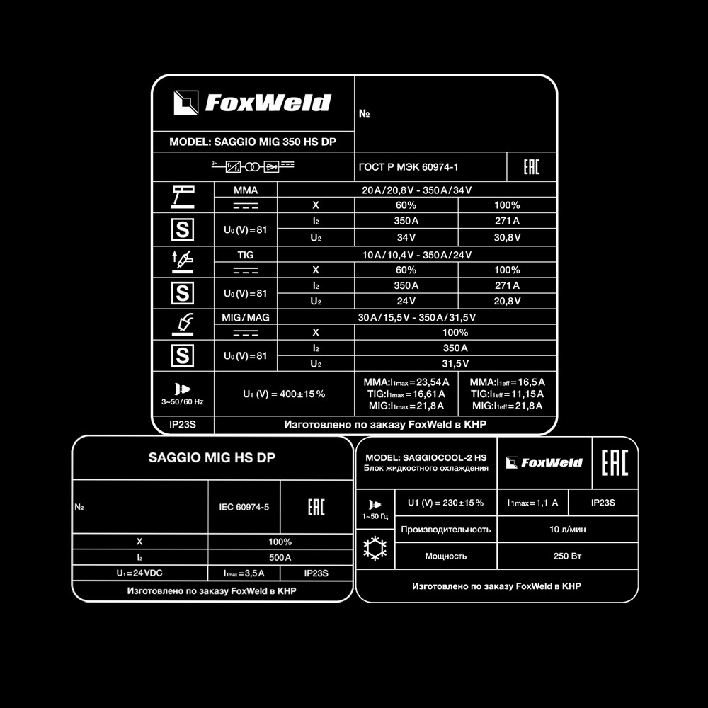 Характеристики сварочного полуавтомата SAGGIO MIG 350 HS DP (MIG/MAG, MMA, TIG Lift, MIG Pulse, MIG Double Pulse)