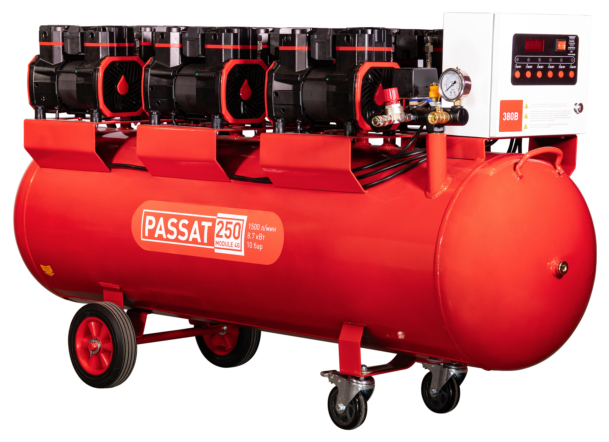 PASSAT — линейка поршневых безмасляных компрессоров, которая сочетает в себе сниженный уровень шума и высокую производительность. Компрессоры этой серии идеально подходят для использования в различных отраслях, где требуется надёжное и эффективное оборудование для сжатия воздуха. Модели линейки PASSAT разработаны с учётом современных требований к производительности и энергоэффективности, что делает их востребованными среди профессионалов.