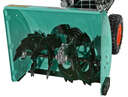 Снегоуборщик оснащен надежным металлическим выпускным желобом, с регулировкой по направлению выброса. Поворот желоба осуществляется дистанционно, посредством специального рычага на панели. Кроме того, предусмотрена возможность настройки угла выброса, благодаря которой регулируется необходимое расстояние выброса снежной массы. Максимальная дальность достигает 11 метров. Удобство эксплуатации в сумерках и темное время суток обеспечивает мощная LED фара – в условиях короткого зимнего дня ее наличие является важной составляющей эффективной работы. Маневренность и проходимость машины обеспечивают штатные широкие пневматические шины с глубоким протектором