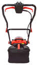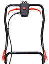 Ширина скашивания составляет 320 мм, а высота скашивания регулируется в пределах от 25 до 55 мм. Объём травосборника — 30 литров.