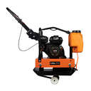 Точка подъёма закольцована для предотвращения слетания устройства с крюка погрузчика. С помощью комплектной подкатной тележки с колёсами устройство легко переводится в походное положение для транспортировки к месту работы, хранения или погрузки. Ременной блок защищён надёжным кожухом для защиты оператора. Ручка имеет надёжное крепление и крепится к устройству через массивные виброгасящие сайлентблоки. Дополнительная транспортировочная скоба, приваренная к опорной плите основания для переноски устройства по рабочему объекту.