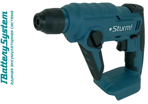 Благодаря небольшому весу позволяет производить свердение отверстий небольшого диаметра одной рукой. Обрезиненная рукоятка позволяет надежно удерживать перфоратор в руке и препятствует выскальзыванию. Подсветка рабочей зоны позволит работать в условиях недостаточной освещенности. Аккумуляторный перфоратор является частью системы 1BatterySystem. 1BatterySystem - универсальная аккумуляторная система. Подходит ко всей линейке аккумуляторного инструмента Sturm! Аккумуляторный перфоратор, в целях экономии, поставляется без аккумулятора и зарядного устройства. Вы можете использовать один аккумулятор данной системы для нескольких инструментов или использовать аккумулятор от шуруповерта с логотипом 1BatterySystem. Компания Sturm! гарантирует наличие в розничной сети аккумуляторов для данной аккумуляторной системы в течение, как минимум, 15 лет.