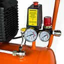 Чувствительное реле давление своевременно отключает компрессор при достижении нужного уровня давления и включает агрегат при его падении, поддерживая необходимый для качественного выполнения работ запас воздуха в ресивере. Эргономичное расположение манометров в прямой видимости улучшает визуальный контроль давления в ресивере и на выходе, а благодаря регулируемому редуктору возможна точная настройка рабочего давления в зависимости от необходимости выполняемых задач. Температурное реле предусматривает автоматическое отключение агрегата при перегрузке или перегреве, защищая его детали от повреждения. Удобная конструкция предоставляет хороший доступ к каждому рабочему элементу для осуществления обслуживания или его легкой замены. Простота агрегата не потребует частого технического обслуживания и позволит самостоятельно выполнять необходимые настройки. Удобный кран для удаления конденсата обеспечивает простую очистку ресивера для улучшения качества подаваемой воздушной массы. Благодаря простой конструкции воздушного фильтра достаточно всего несколько приемов, чтобы быстро и легко его очистить или заменить.