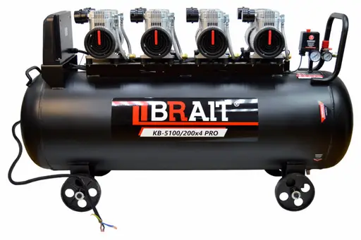 Описание Компрессора воздушный Brait KB-5100/200X4 PRO (200л; 5,1Kw; 8bar, 900л/ м; без масляный 380В)