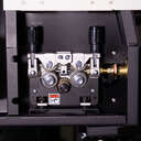 Аппарат выполнен в корпусе "декомпакт" со съёмным подающим механизмом. Рекомендованный тип катушек проволоки D200 и D300 (5-15кг). Мощный подающий механизм предназначен для работы с горелками длиной до 5 метров. Тележка с подставкой под баллон и высокая компоновка аппарата существенно облегчают работу сварщика.
